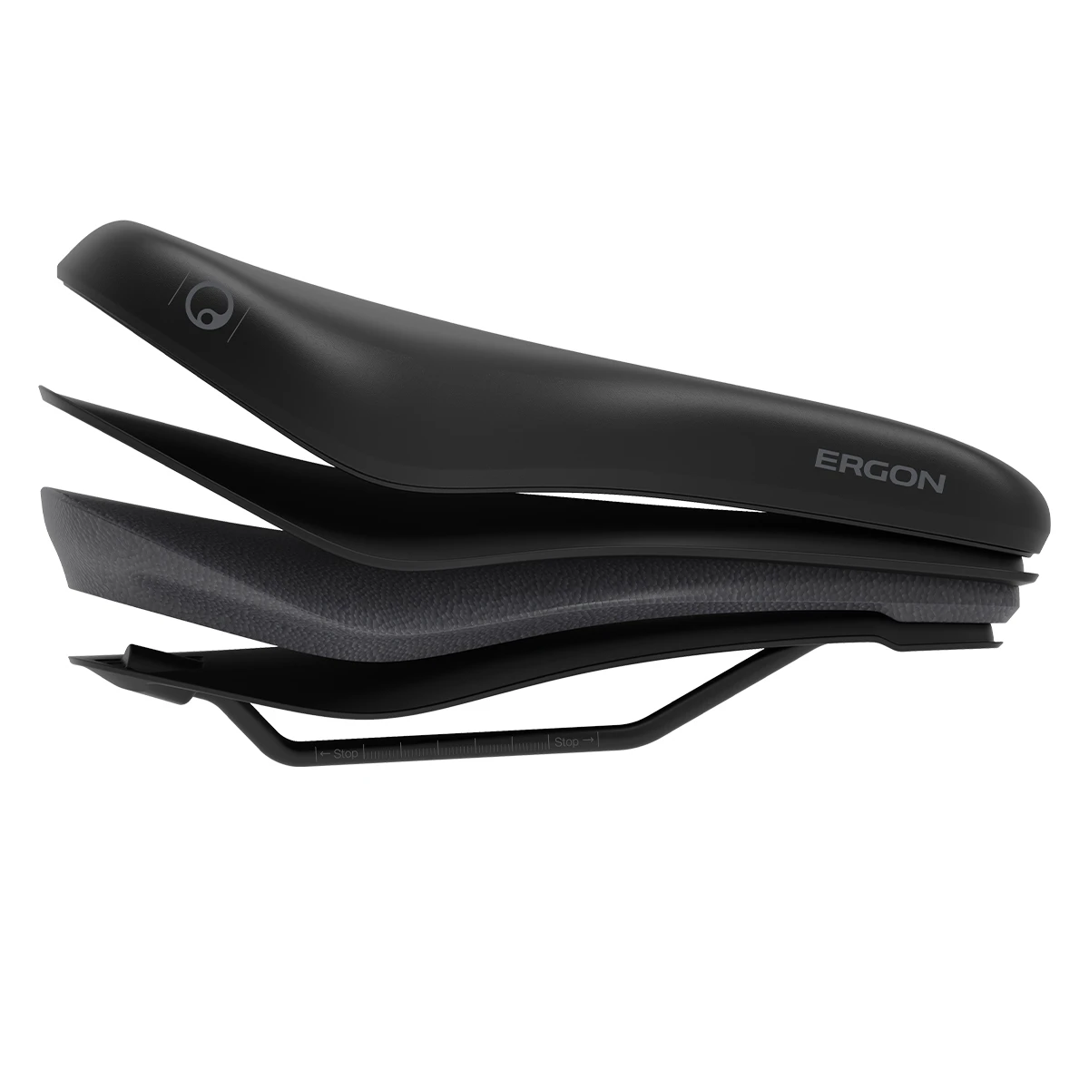 zoals directe respons en enorme herstelkracht. Het zadel volgt de natuurlijke beweging van het bekken en zorgt voor een medische ontlasting van de rug. De rugvriendelijke werking is reeds bekroond met het keurmerk van de “Aktion gesunder Rücken” (campagne “Gezonde rug”). De zadeloppervlakken zijn in het Ergon-zadellaboratorium geoptimaliseerd voor de anatomische omstandigheden van een zeer rechte zithouding voor beide geslachten. Dankzij het ontlastingskanaal met groot oppervlak worden gevoelloosheid en zitongemakken effectief voorkomen.