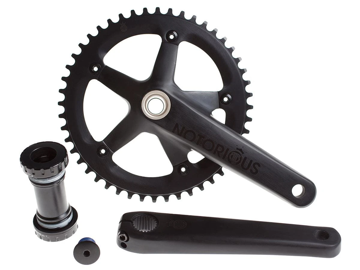 De BLB Notorious Track crankset heeft bijna een carbon look en past perfect in het Notorious portfolio. Het wordt gekenmerkt door perfect vakmanschap, uitstekende stijfheidswaarden en een geweldige afwerking.