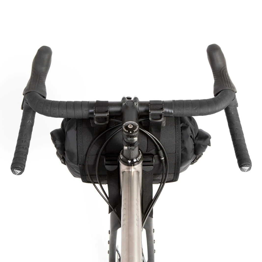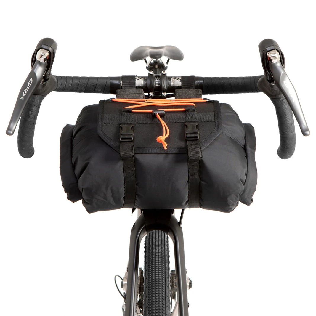 Onze Bar Bag is een ideale en probleemloze bagageoplossing voor bikepacking, touring of woon-werkverkeer op weg-, gravel- en mountainbikes. Zonder rekken, bevestigingen of gereedschap kan de tas in enkele seconden op elke fiets worden bevestigd. Foam spacers en veerbelaste nokkensloten zorgen voor een eenvoudige en betrouwbare bevestiging aan het stuur, terwijl twee onderste bevestigingsriemen zich om de kroon van de vork wikkelen voor extra stabiliteit.